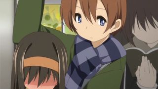 Тёлочка накачала себя с утра пораньше чаем и подалась в школу. А поскольку ехала она в самый час пик, да ещё и поездом, который так хорошо трясёт, то её мочевому пузырю это совсем не понравилось. Ко всему прочему, тут ещё и молодой препод появился и упёрся своей коленкой куда не следует. Вот душа девушки, точнее её мочевой пузырь, и не выдержала, и пришлось сенсэю тащить тёлку в сортир и вытирать ей то, что она замочила.